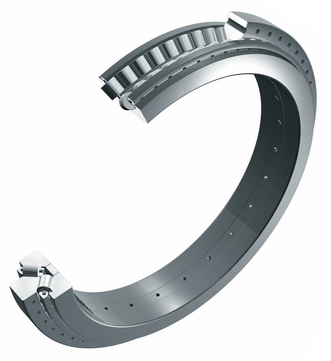 被分割成兩部分的外環(huán)或者內(nèi)環(huán),在裝入滾子和保持器后,被固定在一起,所以安裝時操作非常簡單。